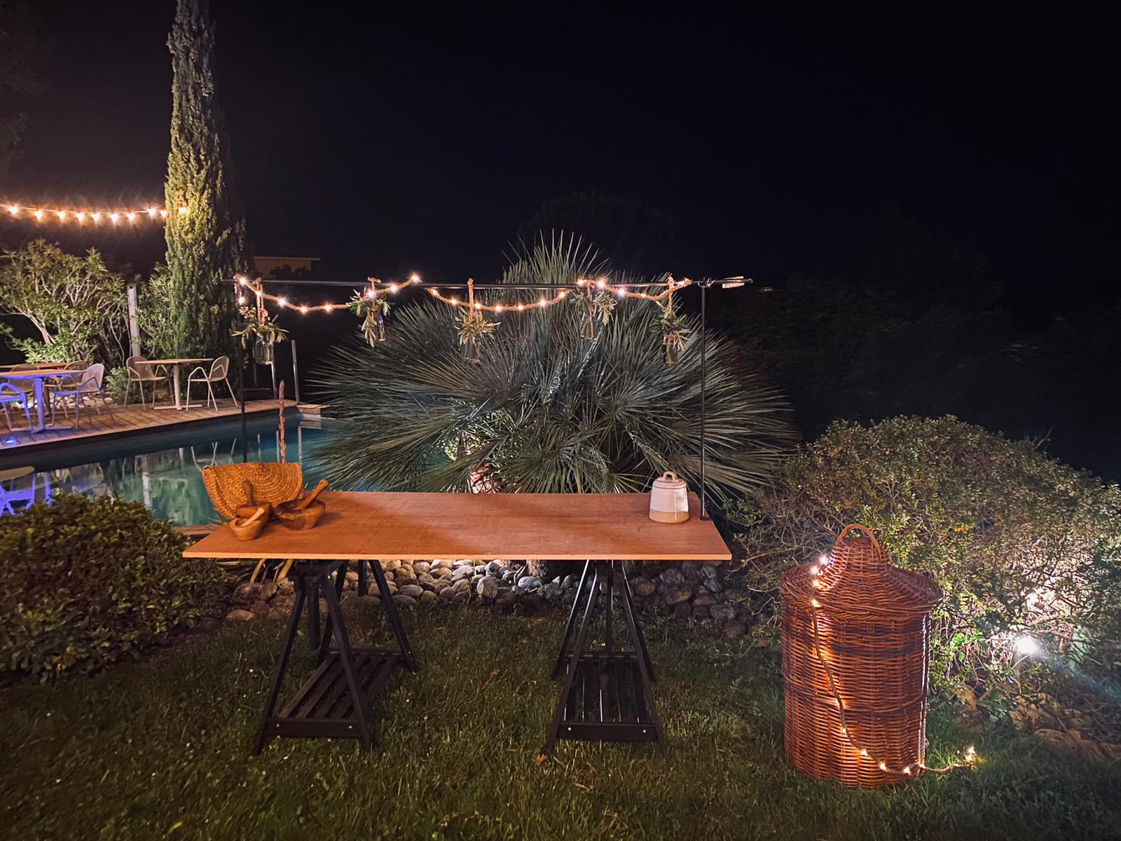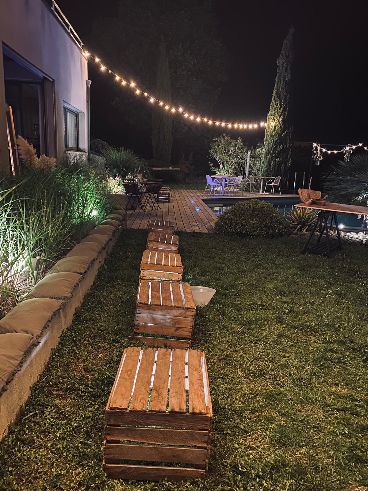 Un terrain en pente à décorer dans un style nature avec des palettes, une grande maison avec piscine à exploiter mais sans risque de danger, leur envie de mettre beaucoup de lumières sans tout faire disjoncter, des animations culinaires à répartir et un espace extérieur à optimiser pour créer une ambiance festive et cocooning.