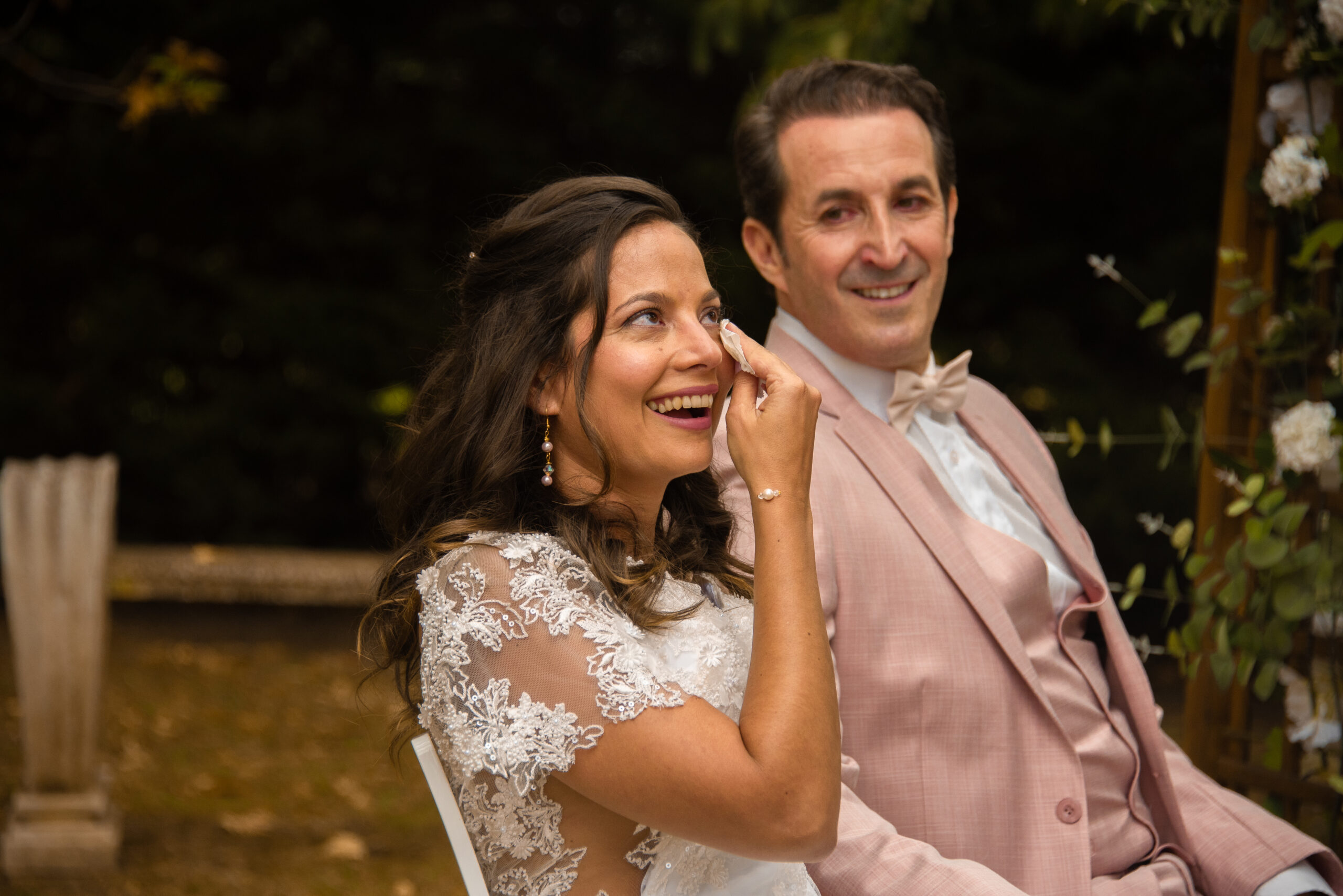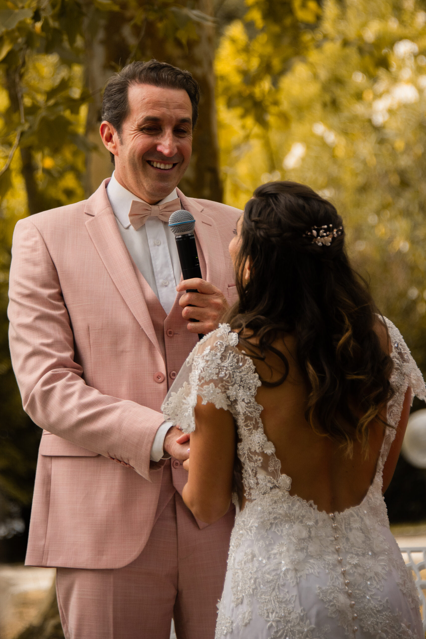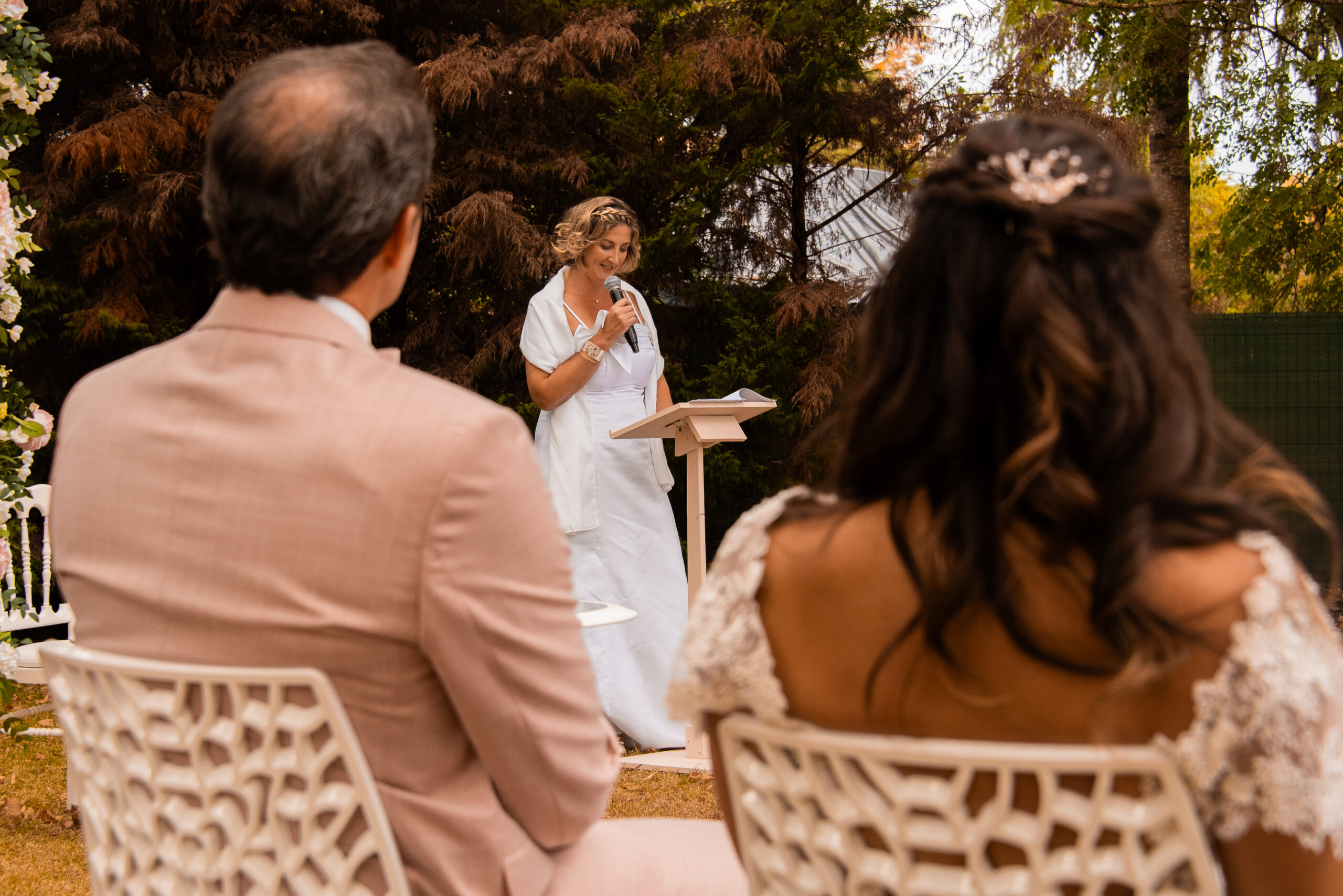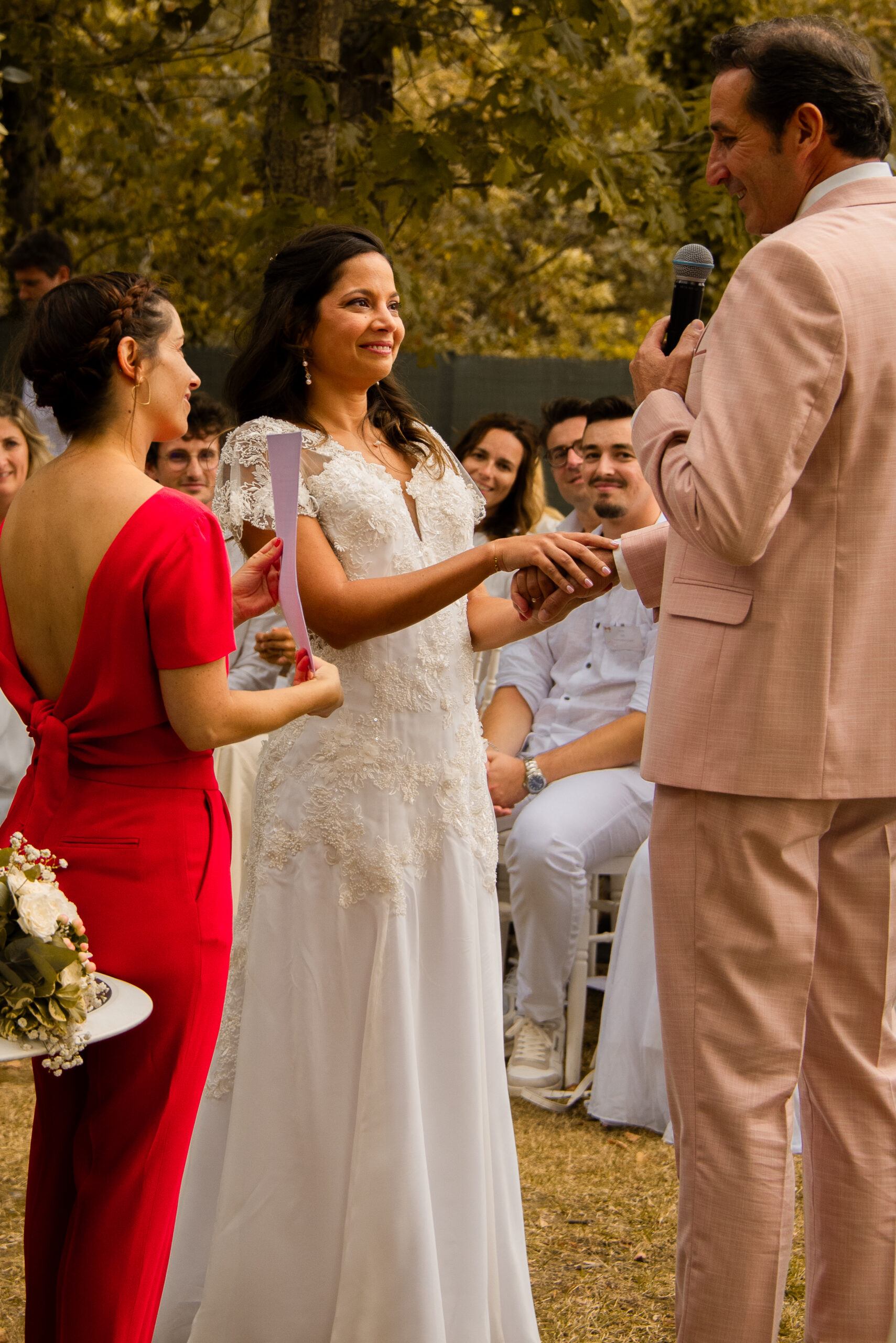 A la fin de la cérémonie, je les remercie avec quelques larmes aux yeux et dans la voix pour leur confiance et ce moment partagé. Ce fût un instant hors du temps que j’ai adoré crée pour eux. Il y avait une telle authenticité et alchimie avec leurs invités que l’émotion vraie ne pouvait être que présente.